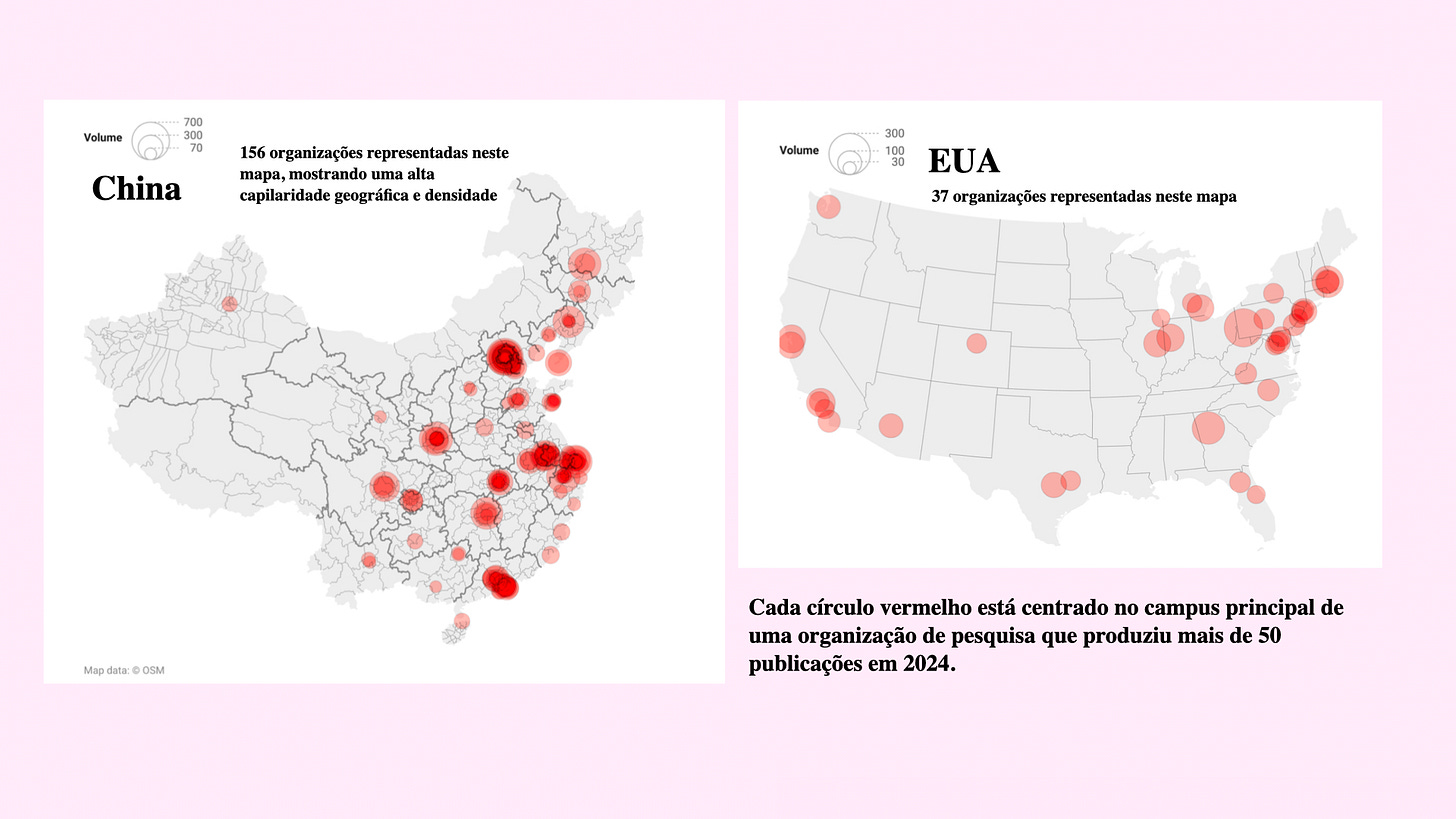 Investe-se massivamente em pesquisadores, em papers acadêmicos e no desenvolvimento de patentes, criando uma base ampla de talento e inovação distribuída pelo país. Essa abordagem descentralizada cria redundância estratégica e reduz a dependência de empresas individuais.